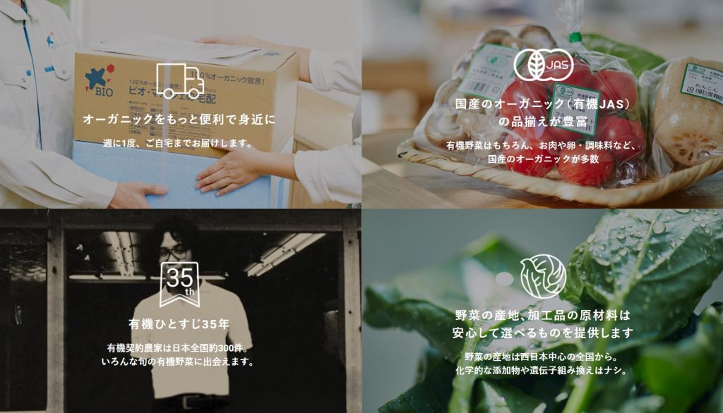 ビオ・マルシェの宅配は、有機野菜やオーガニック食材を中心に週1度、ご自宅までお届けする会員制の定期宅配サービスです。